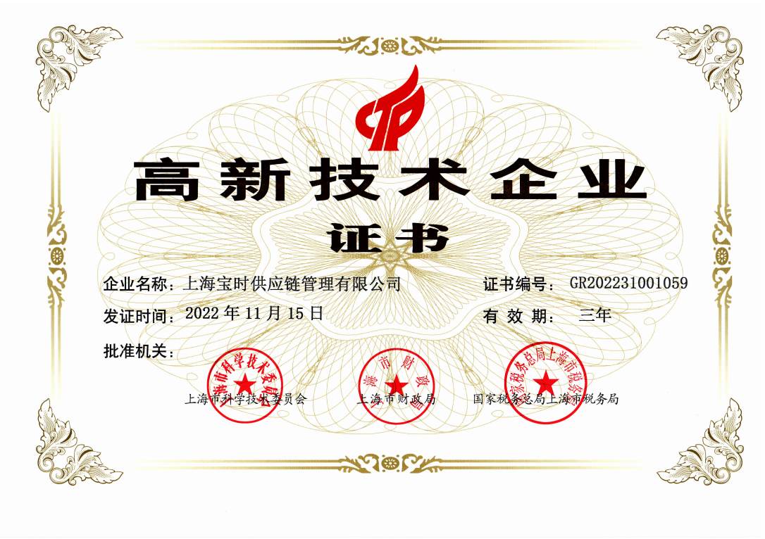 精益管理、深耕技术,宝时云仓已荣获高新技术企业认证、专精特新企业和多项软件著作权证书